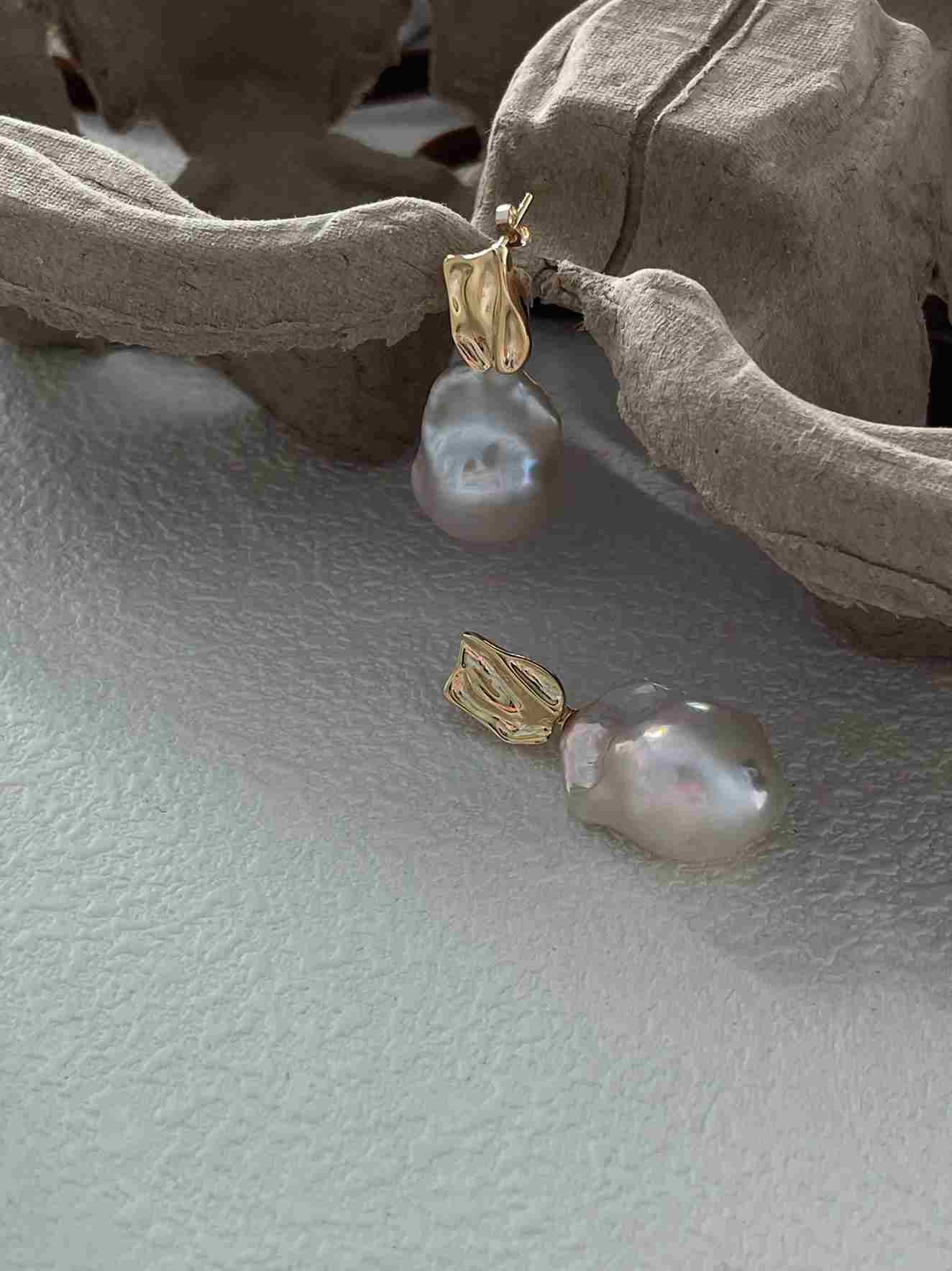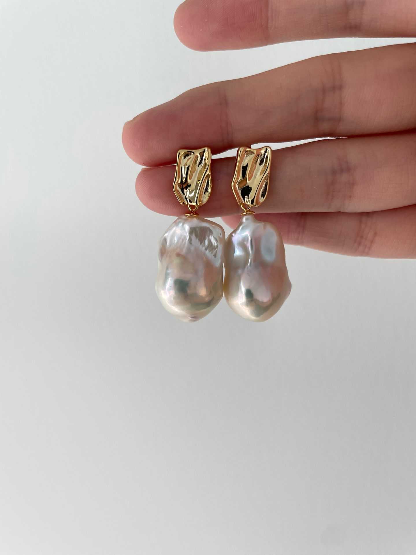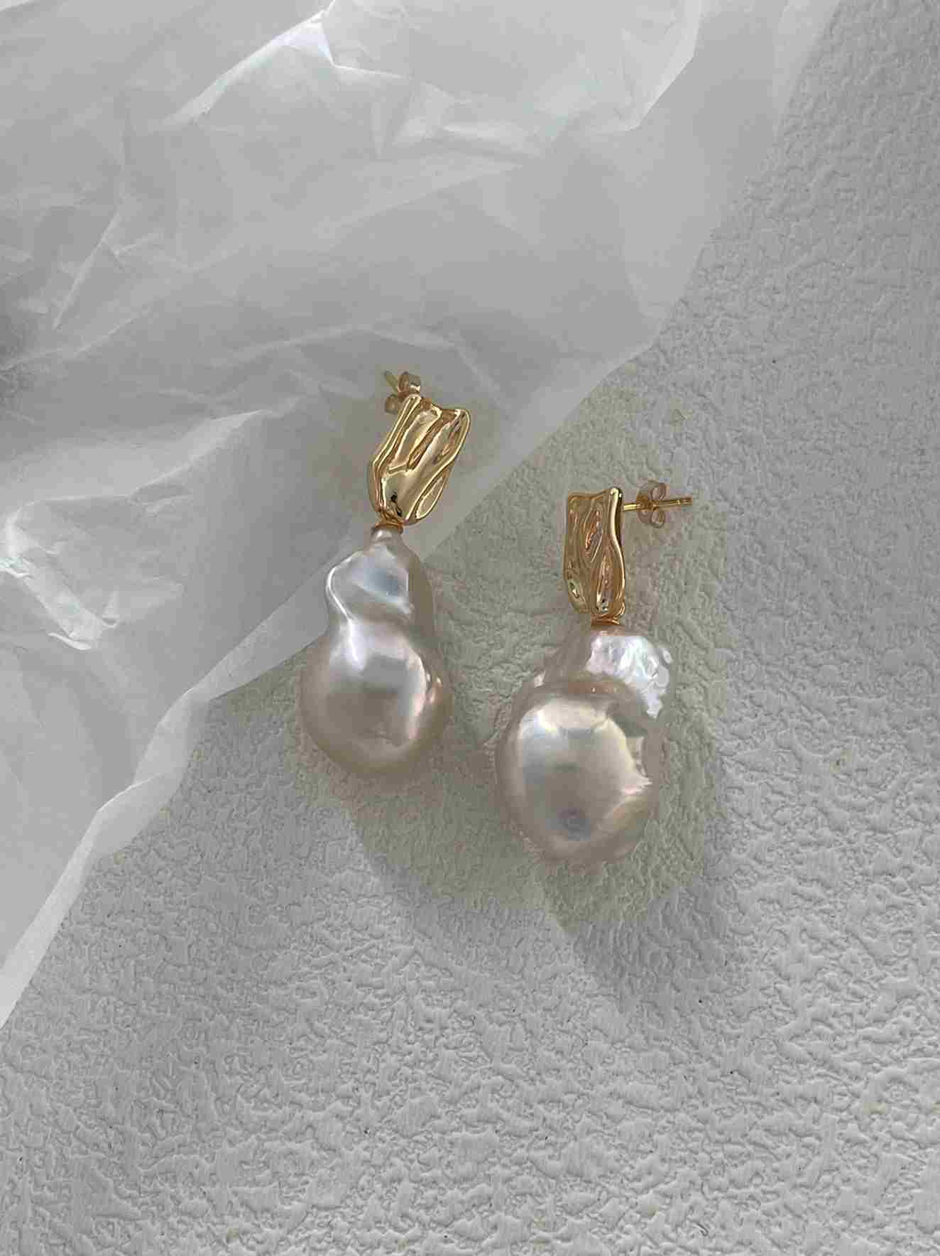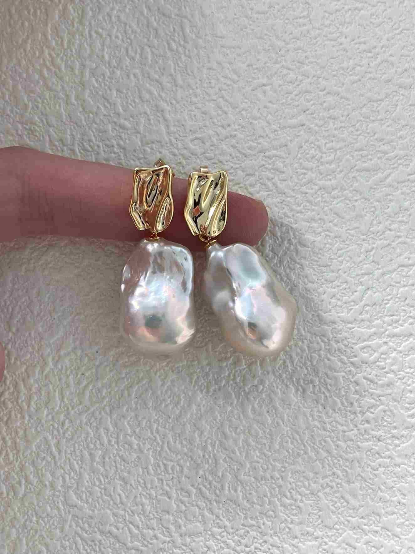 These statement earrings feature bold baroque-inspired metal shapes with organic, irregular contours, creating a refined yet expressive look.