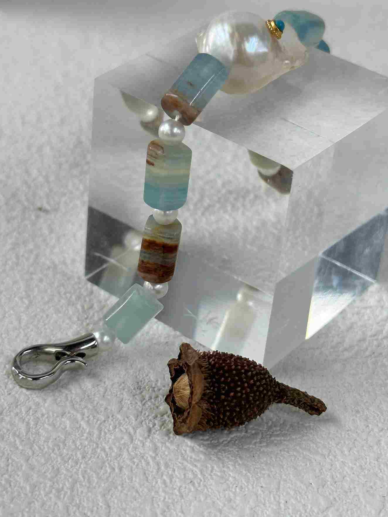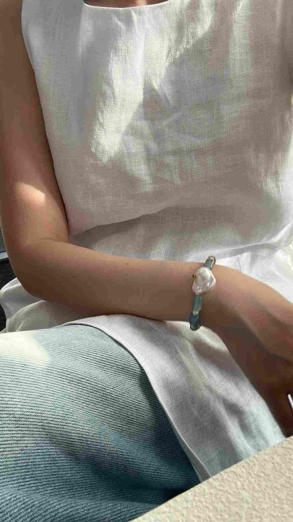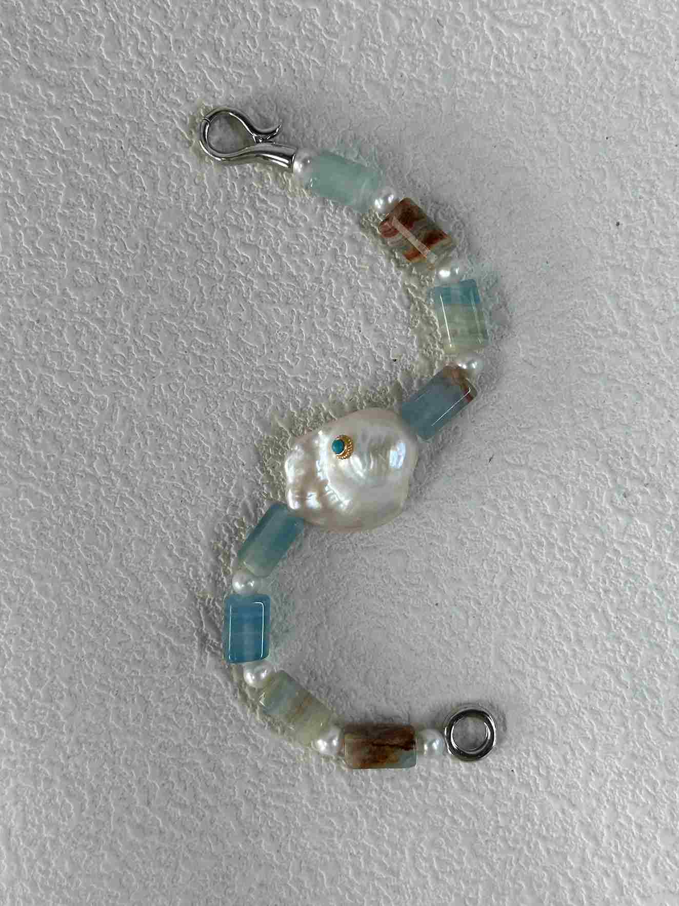 This bracelet features bold blue turquoise baroque stones set with sterling silver, creating a balanced contrast of texture and shine.