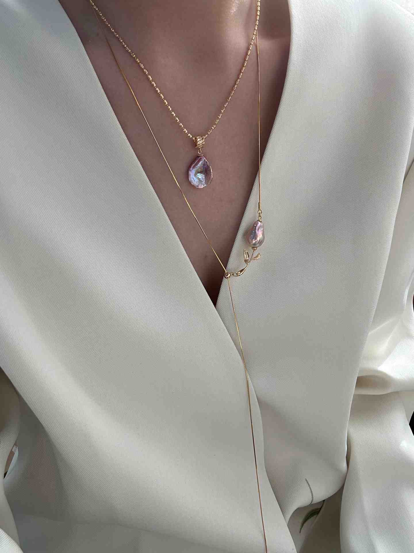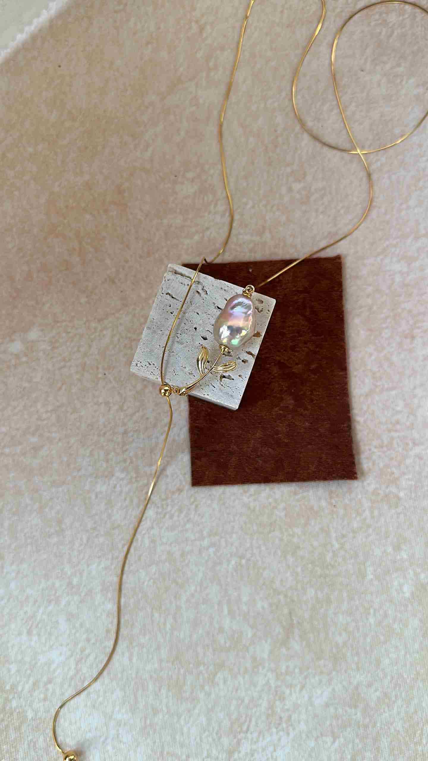 ✦ An organic baroque pearl meets a delicate gold rose, creating a poetic balance of elegance and individuality.