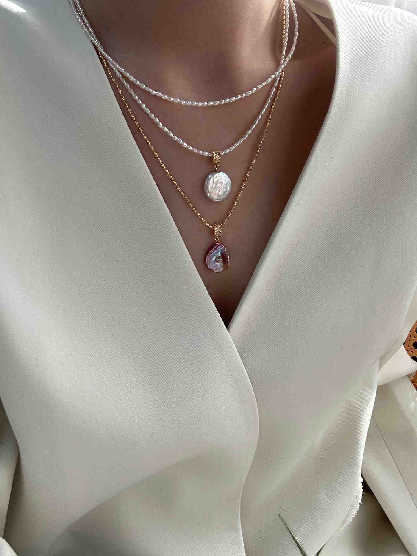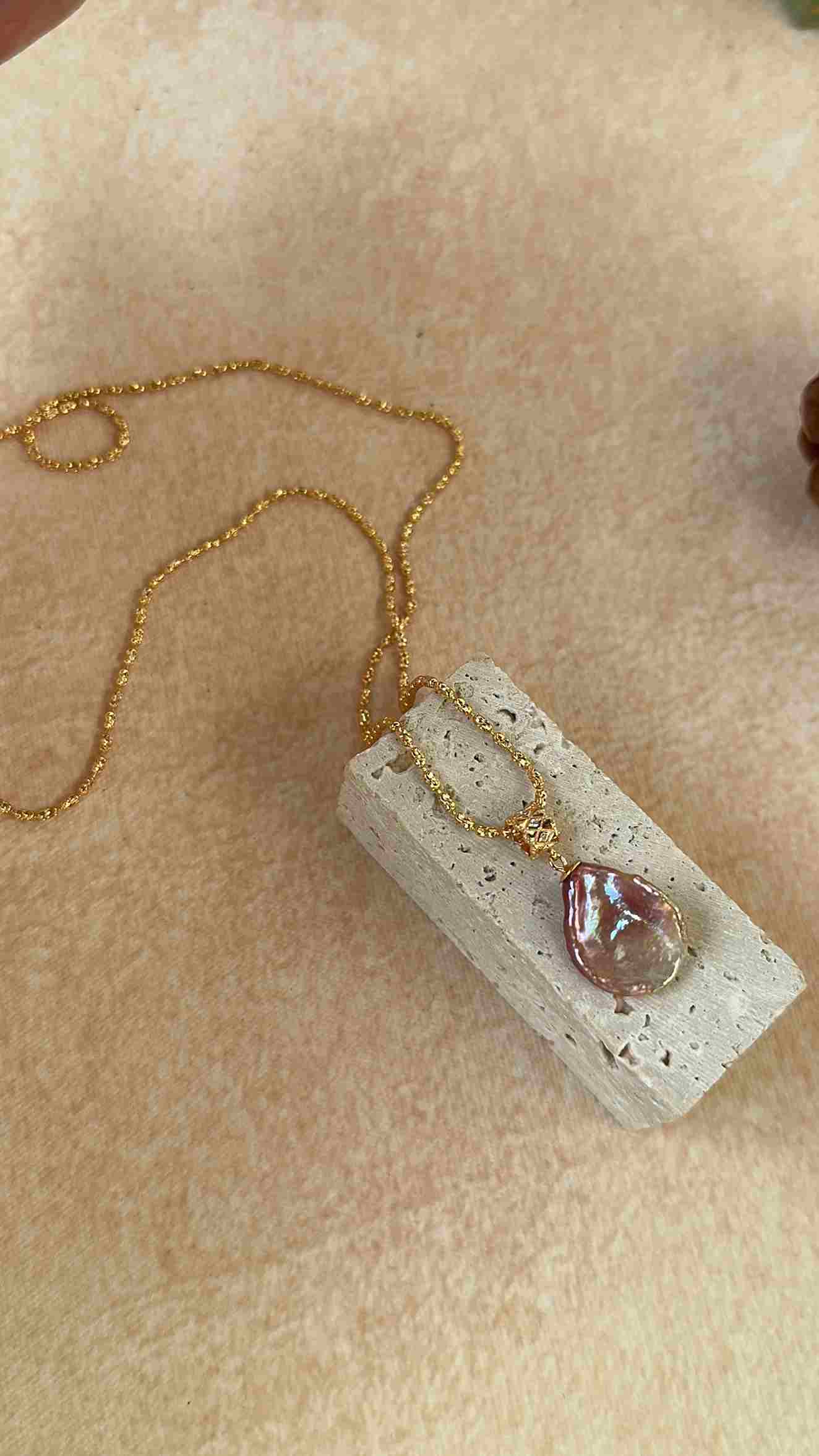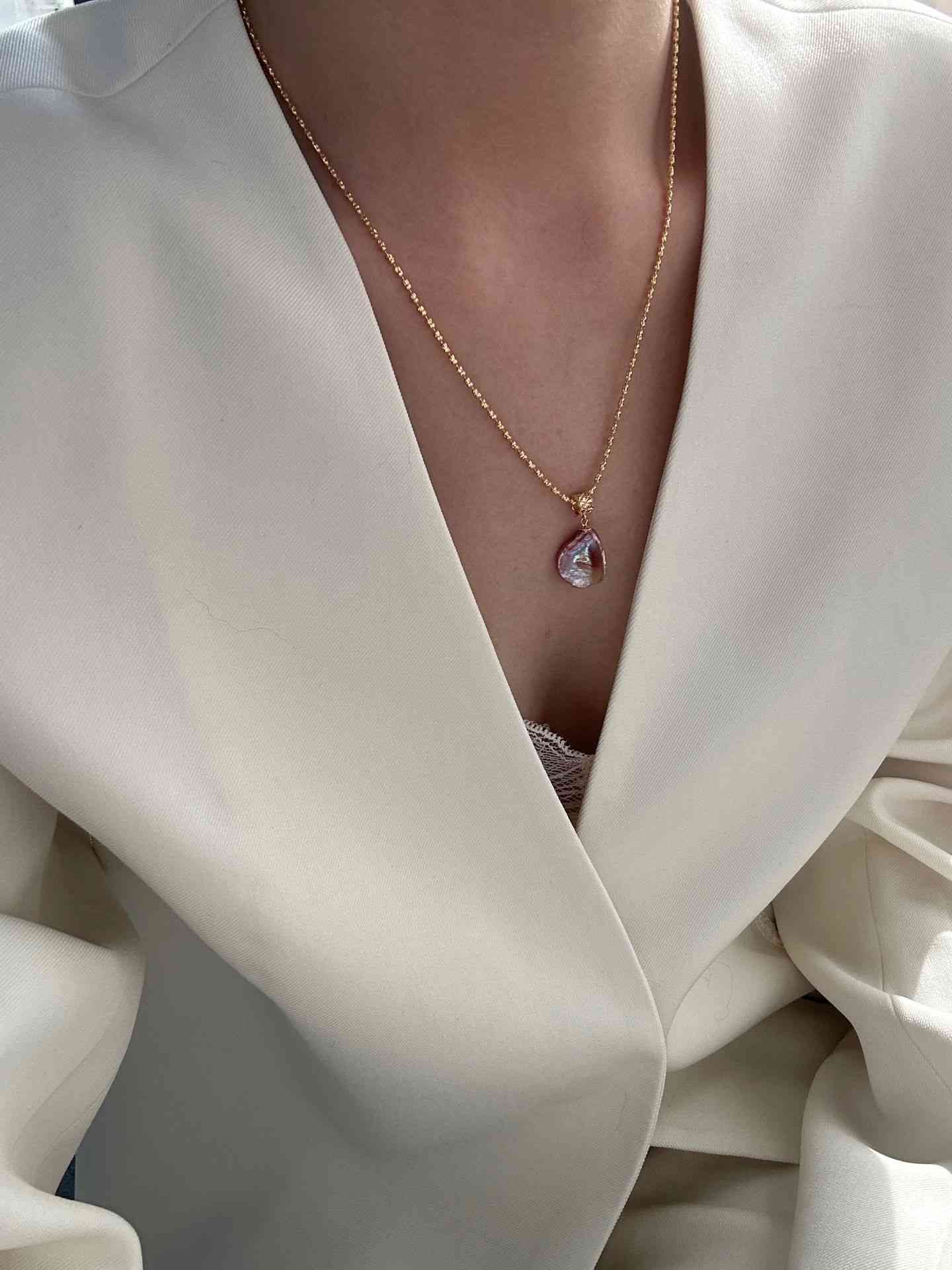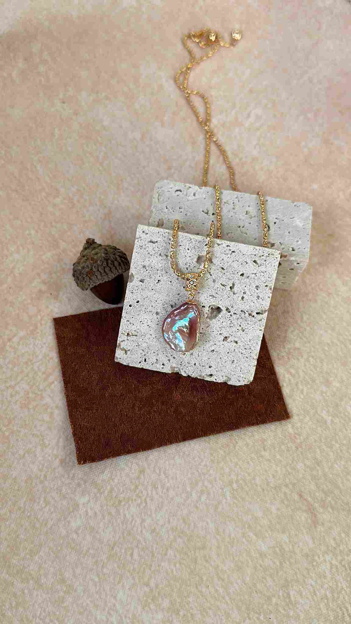 ✦ Inspired by the fluid movement of a sheer, colourful veil, a natural iridescent baroque pearl rests gently at the centre, reflecting soft hues with every shift of light.