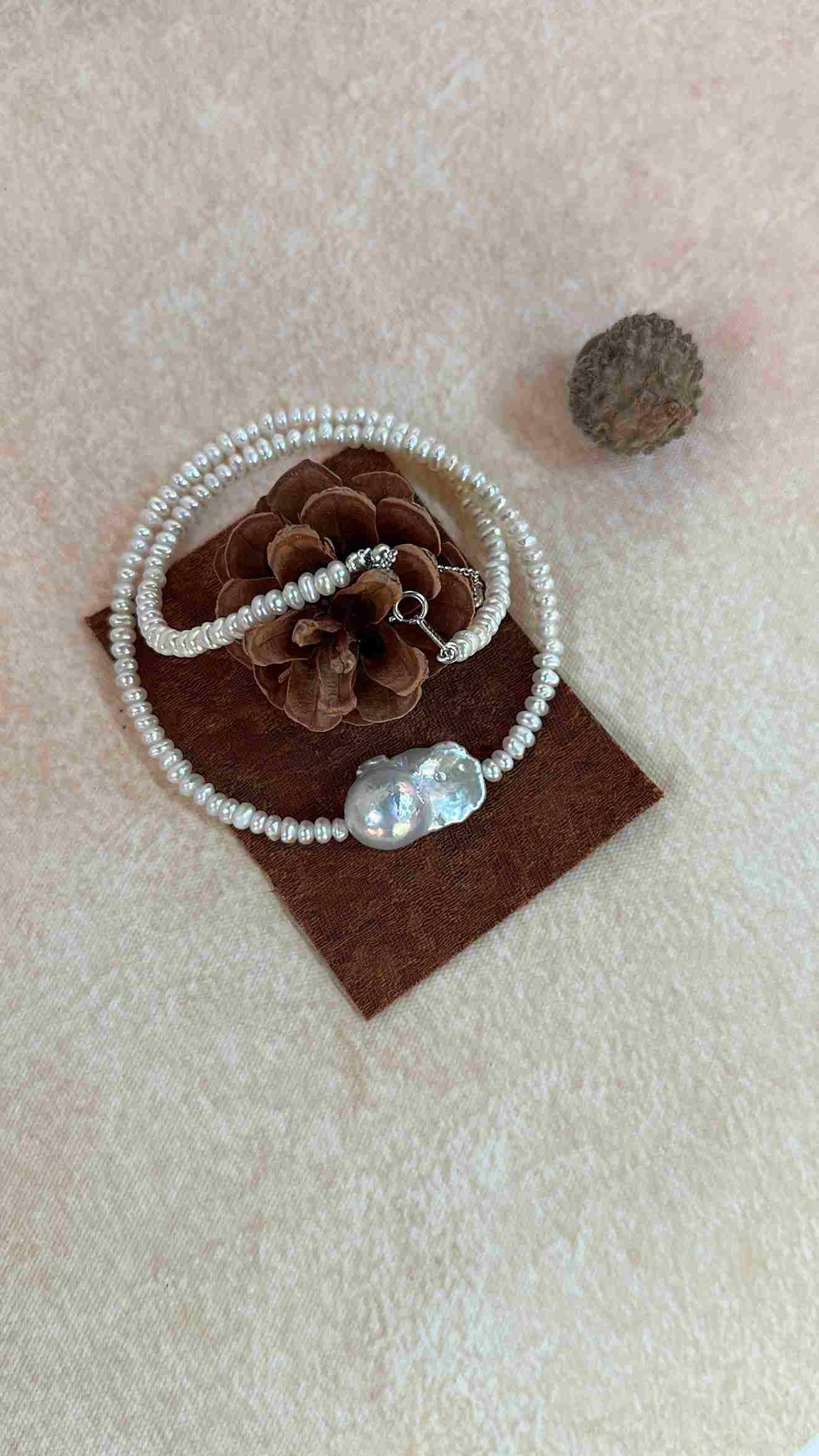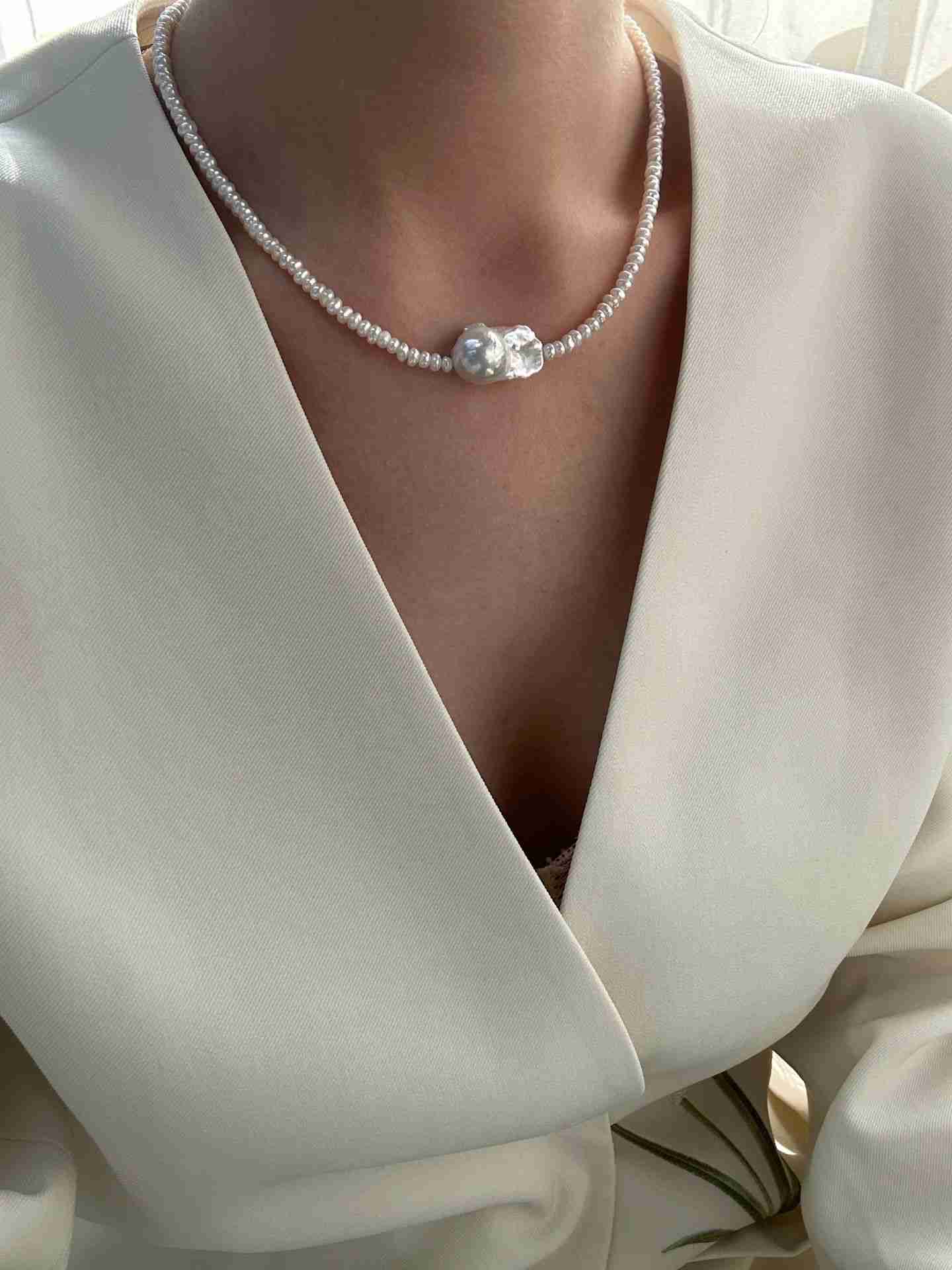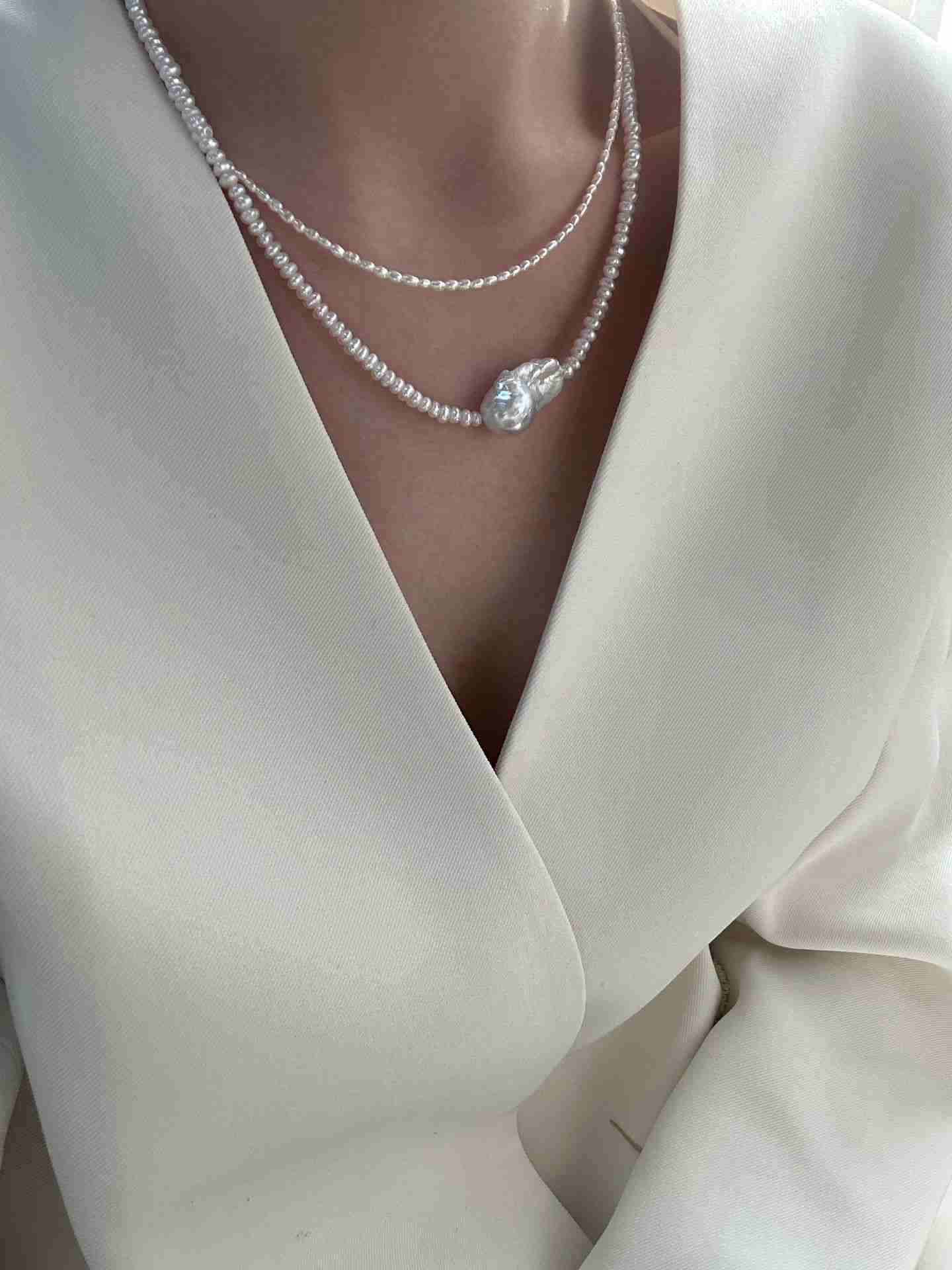 ✦This layered baroque pearl necklace features naturally irregular pearls with a soft, organic luster. Paired with a minimalist sterling silver chain (38+5cm adjustable), it creates a refined, elegant layered look. Perfect for everyday styling, whether worn alone or layered with other pieces.