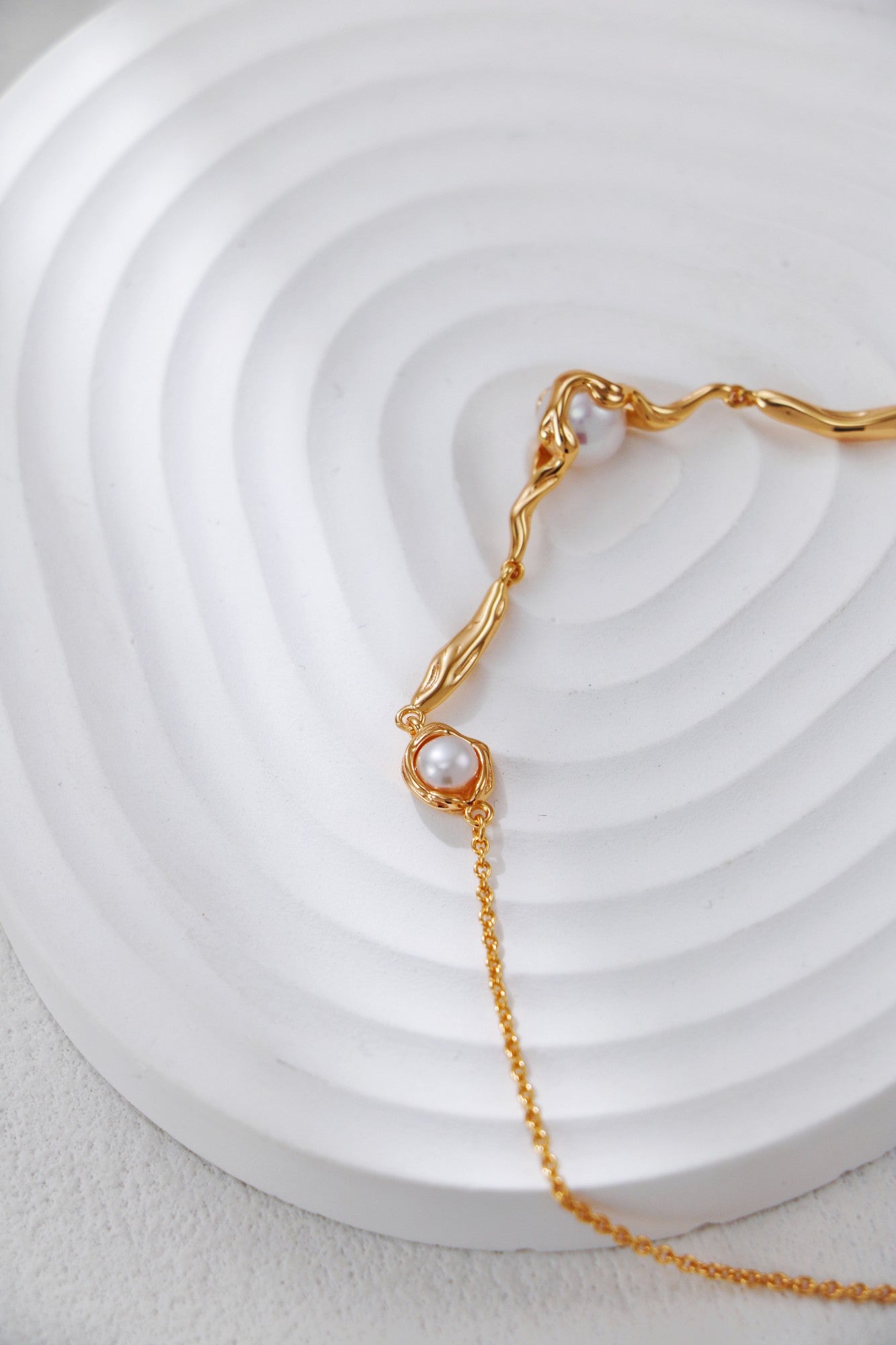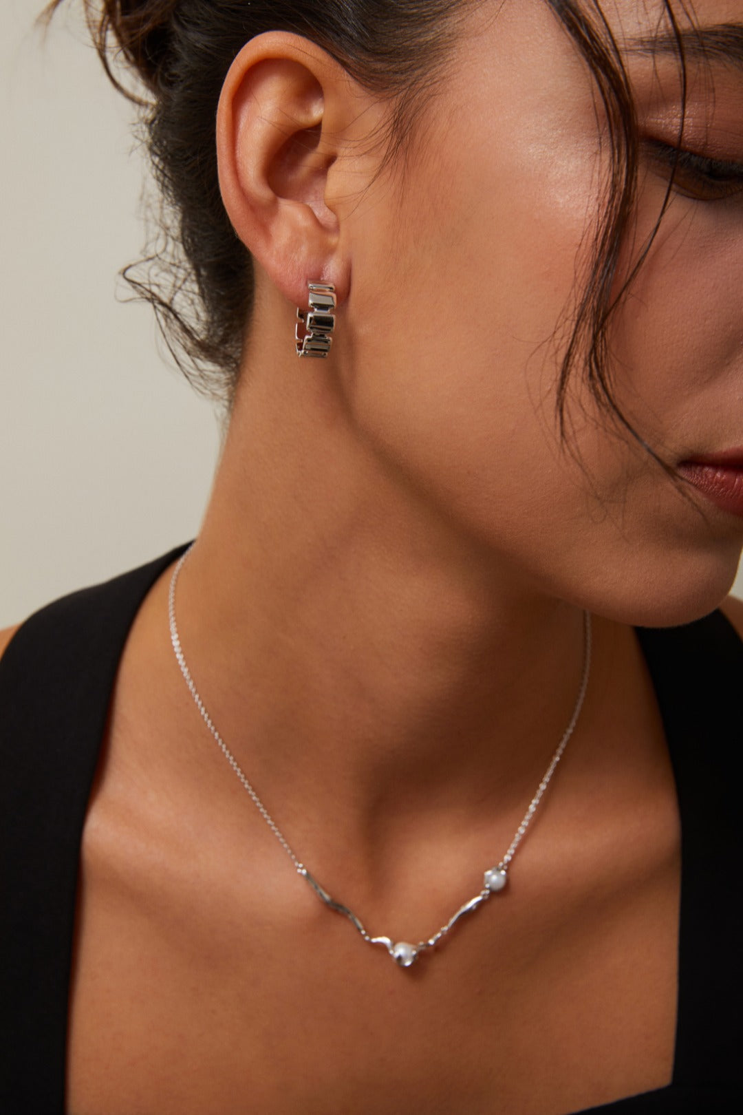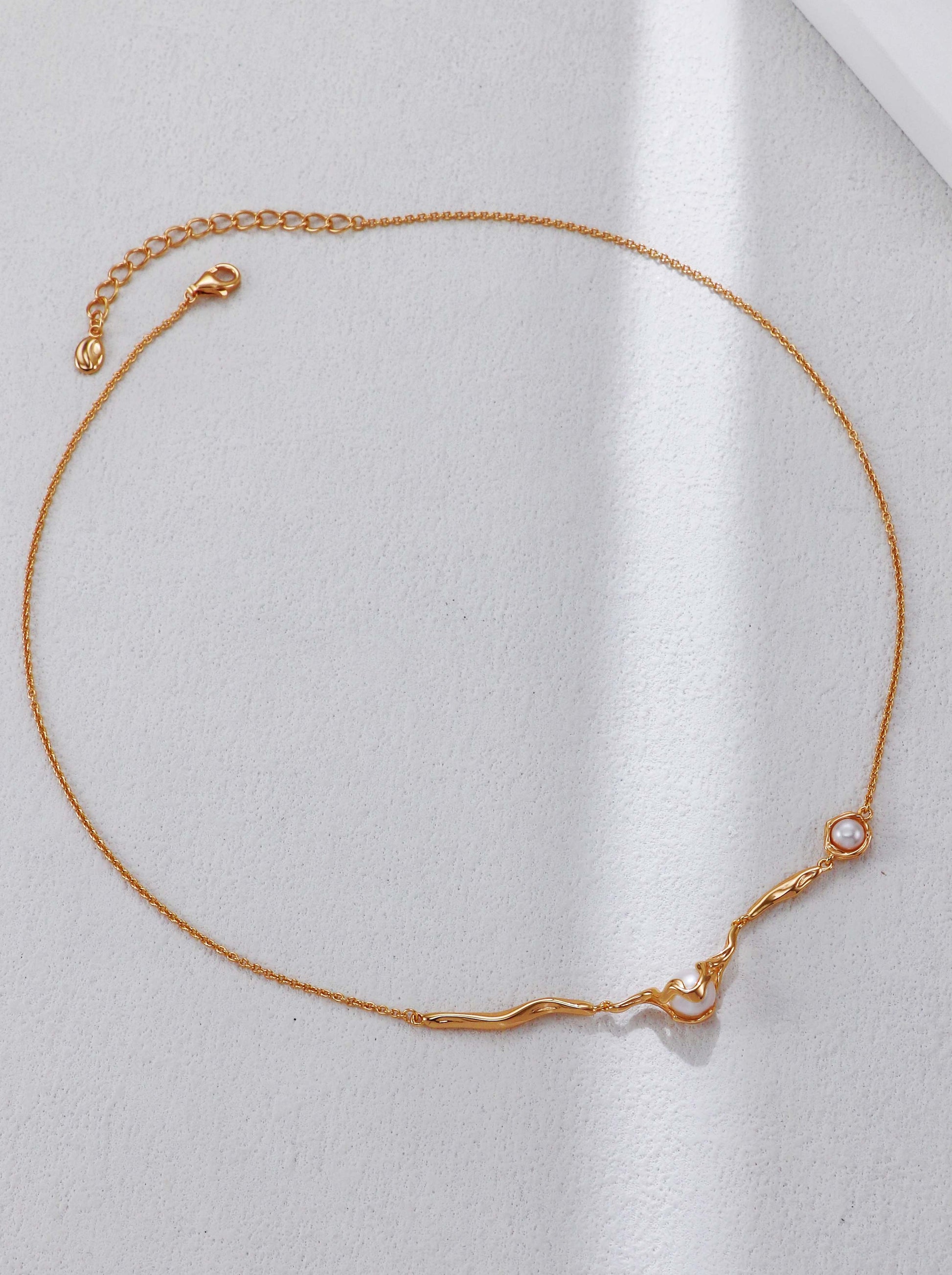 This pearl necklace is crafted in S925 silver, featuring a smooth round pearl paired with a delicate wave-shaped chain for a refined yet modern look.